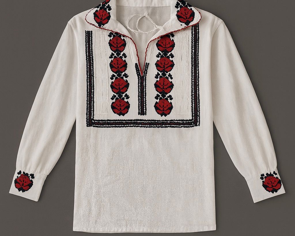 Bluză ie tradițională pentru băieți – broderie roșie și neagră, model autentic românesc Tradiție și eleganță pentru micii domni!Această ie tradițională pentru băieți este realizată din materiale de calitate, cu broderie detaliată în nuanțe de roșu și negru, inspirată din motivele populare românești. Perfectă pentru evenimente, serbări sau purtare în familie, oferă un aspect autentic…
