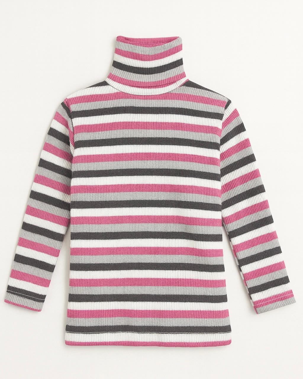 Bluză de fete , cu un design modern în dungi roz, gri și alb, ideală pentru sezonul rece.