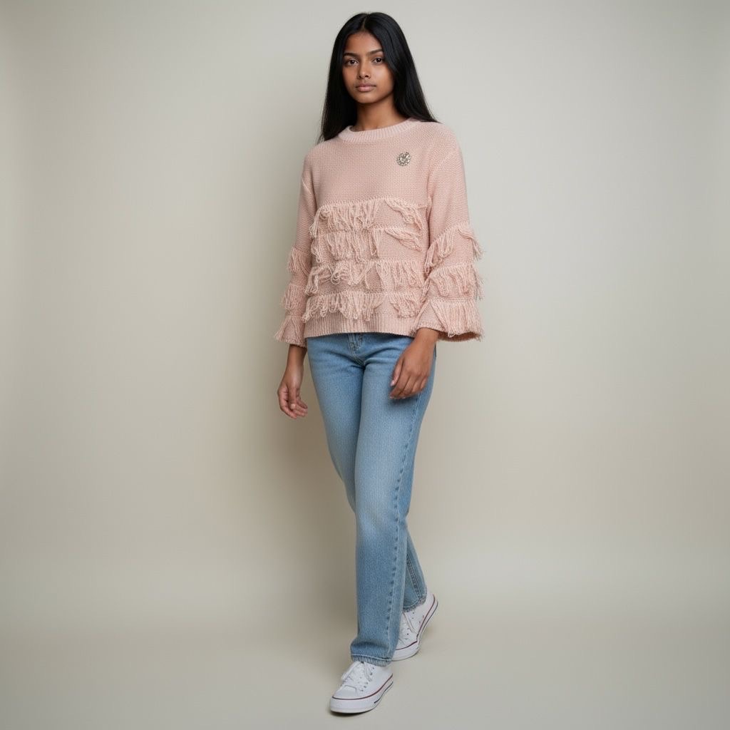 Bluză pentru fete – Fabricată în Italia (100% Acril) Fabricată în Italia, această bluză pentru fete este realizată din 100% acril, oferind căldură, confort și întreținere ușoară. Moale și ușoară, este ideală pentru purtare zilnică — la școală, la plimbări sau pentru ținute casual. Un articol stilat și practic în garderoba oricărei fete.